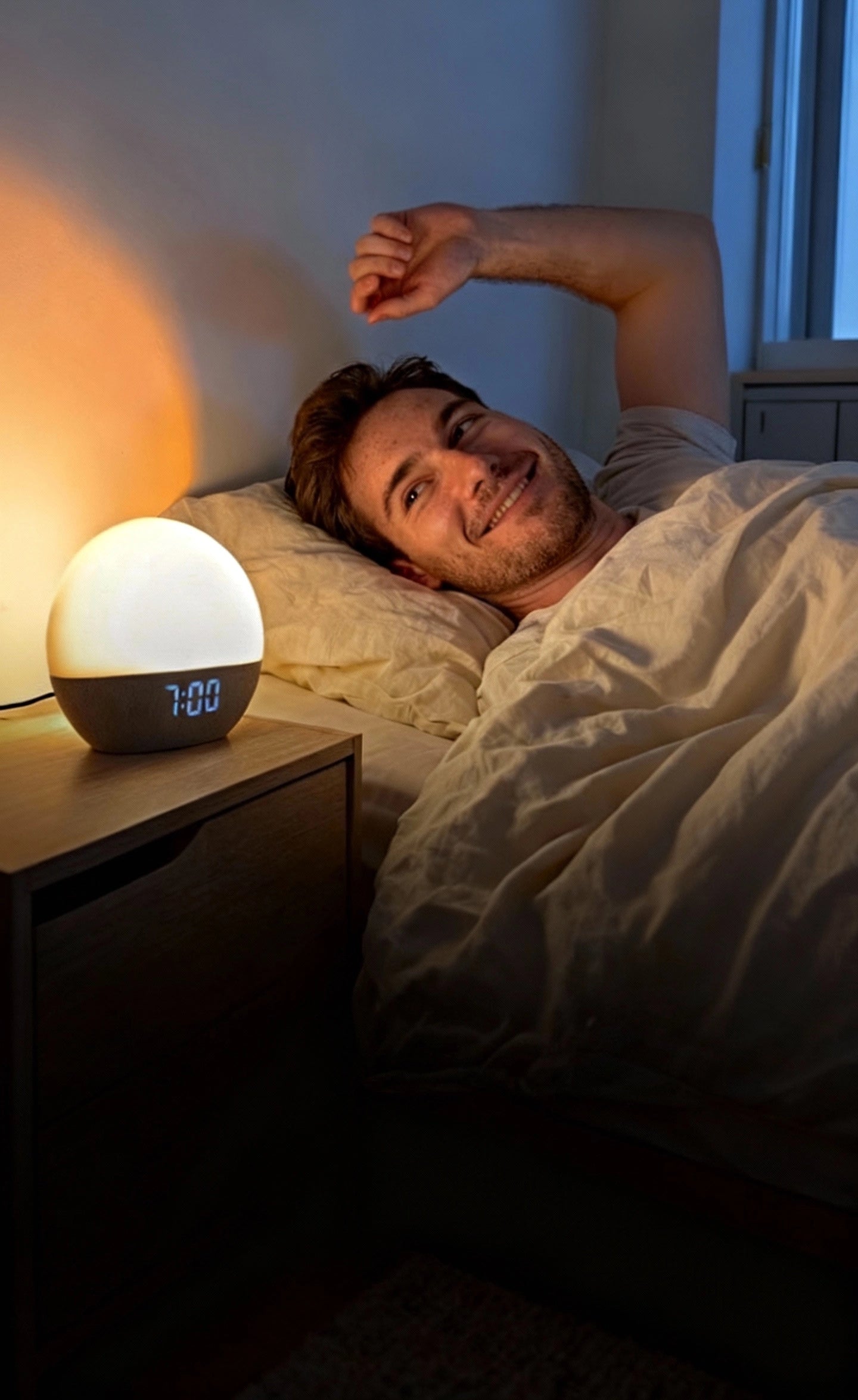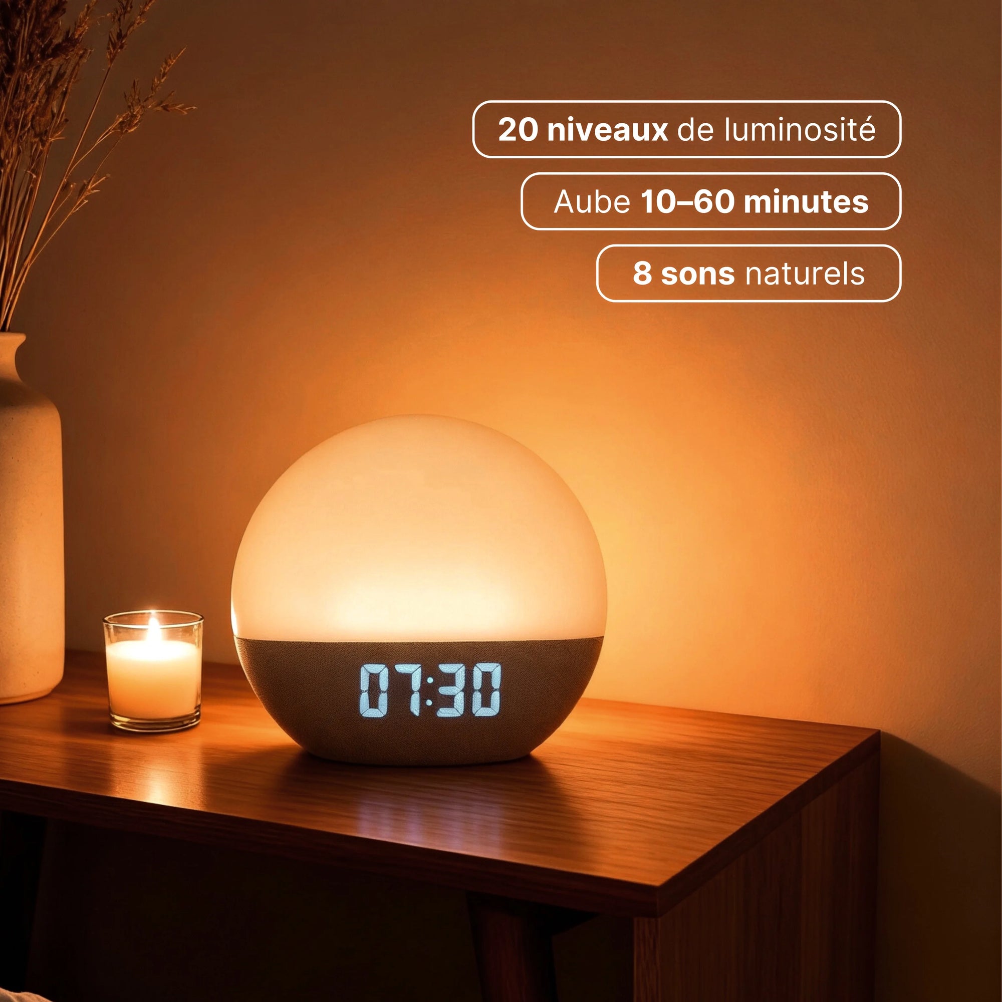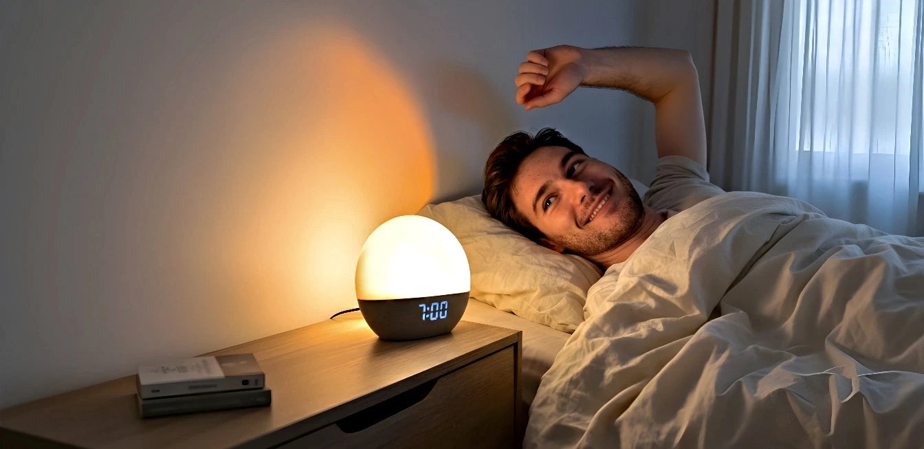 Un lever doux qui coupe le stress matinal et resynchronise votre horloge naturellement.